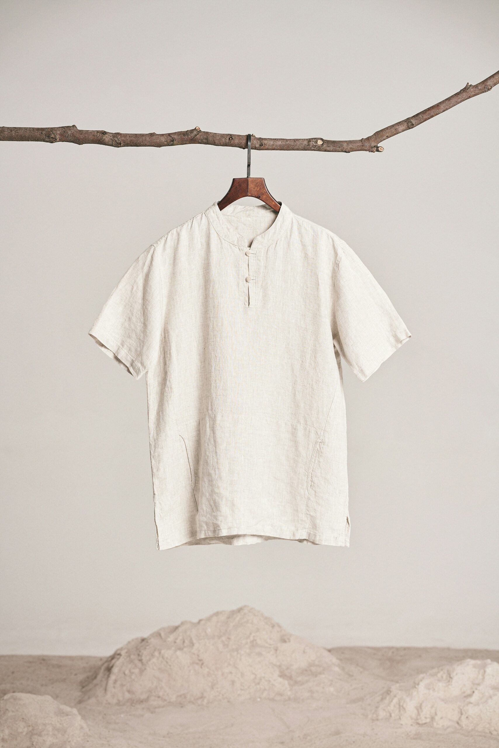 Be the first to review “MANDARIN COLLAR LINEN SHIRT-IVORY WHITE”